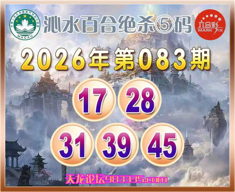 083期:【沁水百合】 🩴绝杀⑤码🩴【17.28.31.39.45】开:00准