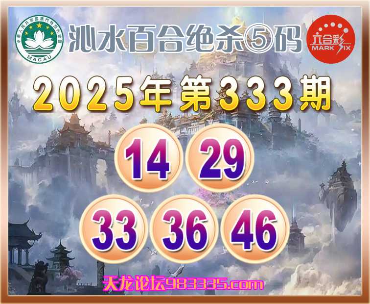 333期:【沁水百合】 🩴绝杀⑤码🩴【14.29.33.36.46】开:鼠06