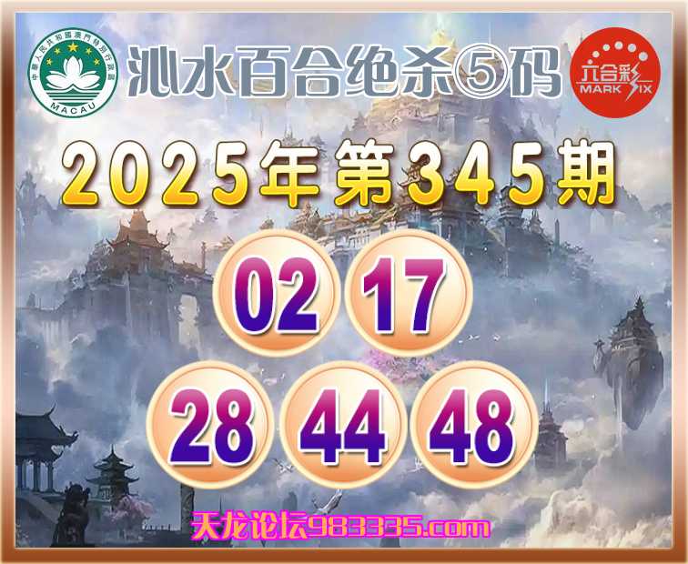 345期:【沁水百合】 🩴绝杀⑤码🩴【02.17.28.44.48】开:马24