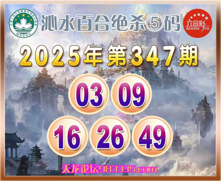 347期:【沁水百合】 🩴绝杀⑤码🩴【03.09.16.26.49】开:蛇13