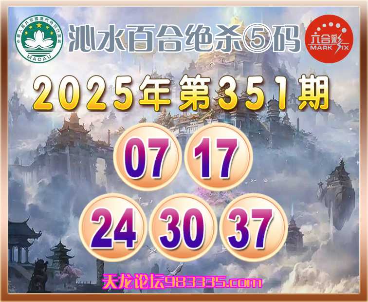 351期:【沁水百合】 🩴绝杀⑤码🩴【07.17.24.30.37】开:虎04