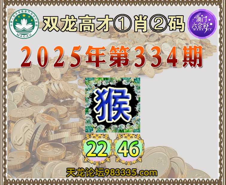 334期:【双龙高才】 🍙①肖②码🍙【】【22.46】开:猴46