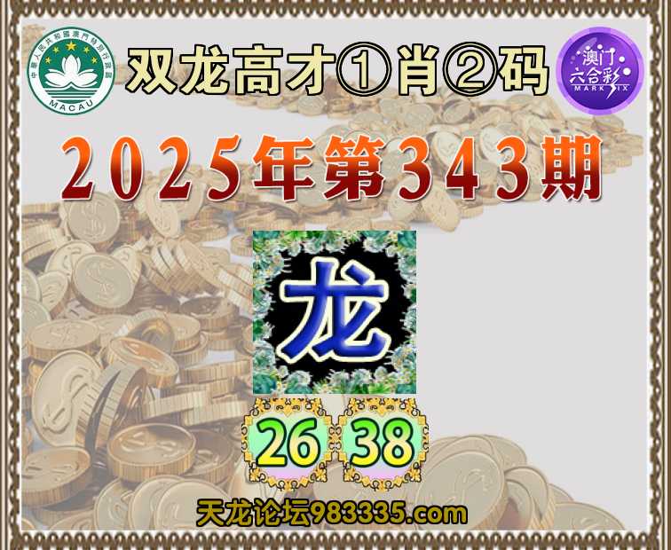343期:【双龙高才】 🍙①肖②码🍙【】【26.38】开:龙38