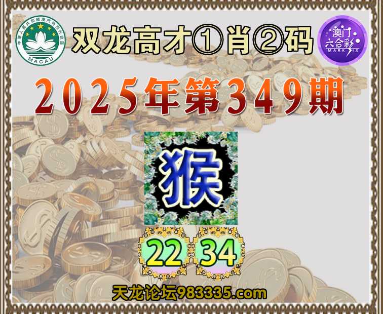 349期:【双龙高才】 🍙①肖②码🍙【】【22.34】开:猴22