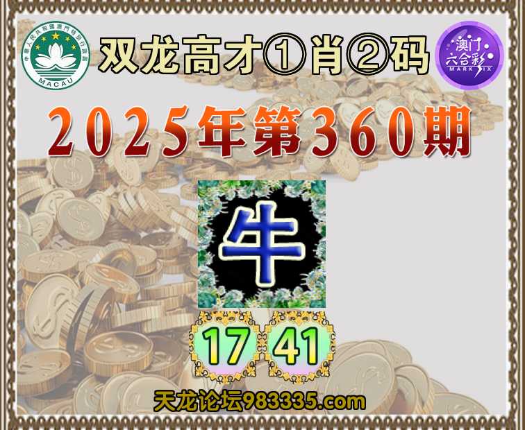 360期:【双龙高才】 🍙①肖②码🍙【】【17.41】开:牛41