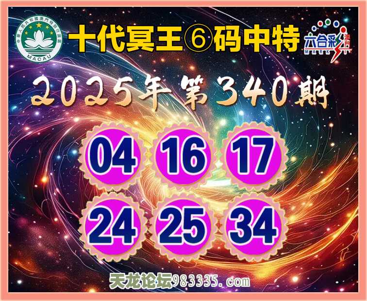 340期:【十代冥王】 🍧⑥码中特🍧【04.16.17.24.25.34】开:16