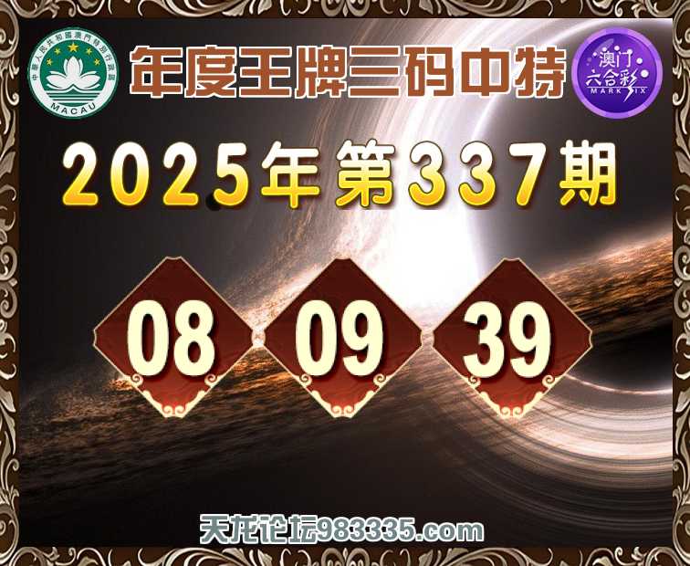 337期:『年度王牌』 🥠三码中特🥠【08.09.39】开:09